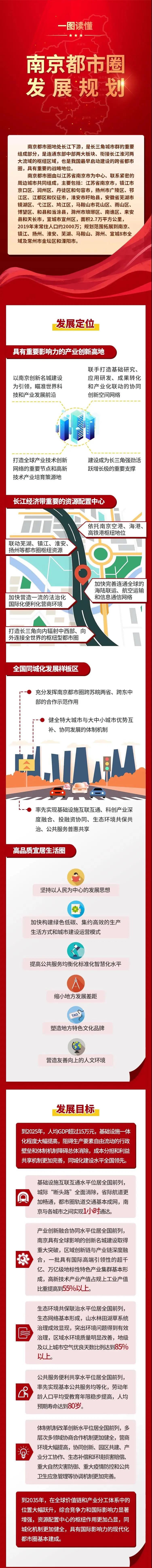 近日,在《南京都市圈发展规划》新闻发布会上,江苏省人民政府、安徽省人民政府联合印发的《南京都市圈发展规划》全文正式向社会公布。作为全国都市圈先行者,在“十四五”开局之年,《南京都市圈发展规划》经国家发展改革委批复同意,由江苏和安徽两省政府正式印发,成为国家层面批复同意的第一个都市圈发展规划,标志着南京都市圈建设上升到新的战略高度。《规划》聚焦同城化、高质量,协作共进,从基础设施互联互通、科技创新协同促进、现代产业分工协作、高水平开放合作、统一市场建设、公共服务便利共享、生态环境共保联治、城乡融合发展等8个方面,明确都市圈建设的重点任务和关键举措,加快构建“同城化发展”和“规划实施”两套机制。后附全文。