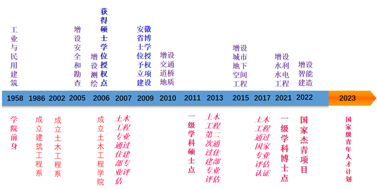 专业历史悠久。1958年9月毛泽东同志视察合肥,提出“有大希望”,随即为支援安徽建设,根据国家建筑工程部的指示,1958年9月组建安徽建筑工程学校,首批开设工业与民用建筑(beat365官网土木工程专业前身)、硅酸盐两个专业。