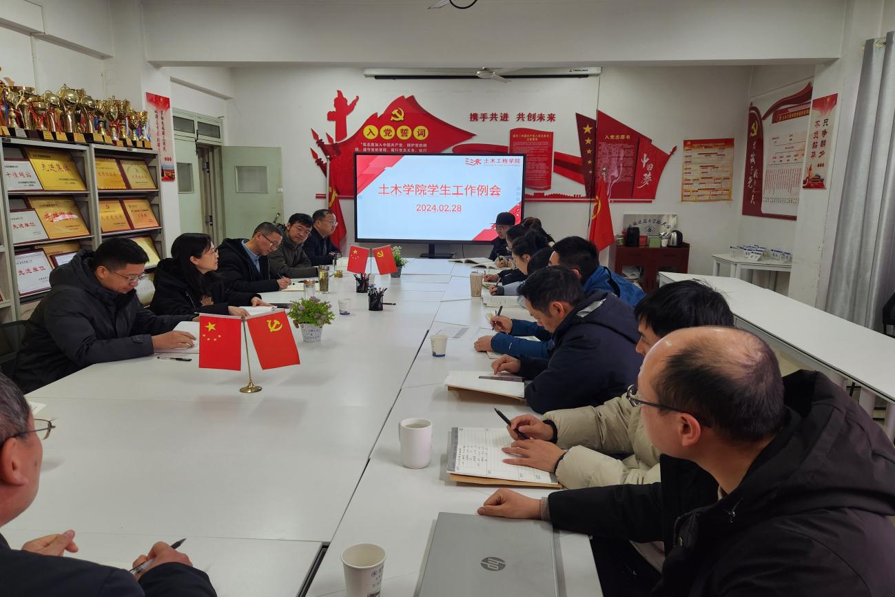 本网讯 为明确新学期学生工作方向,为各项工作开好局、起好步,提升工作实效,2月28日,土木学院在徽匠楼1306会议室召开二月份学生工作例会,主要就近期重点工作开展全面部署和谋划,学院领导班子、全体专兼职辅导员共同参会,会议由学院党委书记王媛主持。