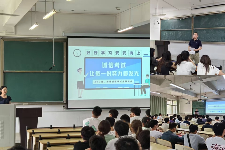 班会伊始,辅导员以生动详实的案例展开教育——不仅剖析了校园内近年发生的隐蔽电子设备作弊、夹带缩印资料、交头接耳抄袭等典型违规行为,更深入探究了过度功利心态、规则意识淡漠、不良环境诱导等深层心理动因;随后带领学生系统学习《普通高等学校学生管理规定》等法律法规和文件,从警告、记过等纪律处分,到影响考研就业、纳入诚信档案的长远后果,全方位阐释作弊行为的严重代价;同时特别强调学院将通过线下巡考与线上信息监测系统双轨并行的方式,构建全覆盖监督网络。在交流讨论环节,同学们一致认为,考试既是知识水平的检验场,更是品德修养的试金石,诚信乃立身之本的共识深入人心。