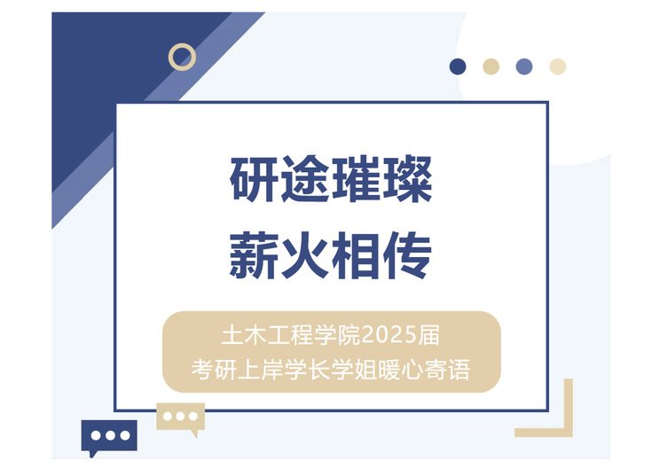 跳蚤市场不是简单的旧物交易,而是青春故事的“接力赛”。旧教材传递的是知识传承,闲置物品续写的是生活温度,让毕业季多了一份循环的美好。更让毕业生们以一种特别的方式与校园告别,展现了文明离校的积极态度。 寄语纸短情绵长,文明离校意悠长 在毕业季与考研备考季交织的六月,土木学院“研途璀璨,薪火相传”考研经验交流会温情开讲。多位成功上岸的2025届毕业生学长,以亲身经历为学弟学妹拆解考研难题,用真挚寄语传递逐梦力量,为土木学子的考研征途点亮微光。
