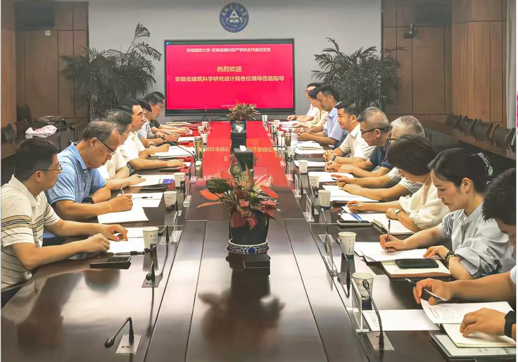 本网讯 为进一步深化校企交流合作,推动科技成果转化和行业需求对接。2025年7月8日,安徽省建筑科学研究设计院(以下简称“建科院”)院长刘春雷一行来beat365官网调研交流。beat365官方网站党委副书记、校长蔡国军主持会议,研究生院、科技处、科技成果转化处、就业工作处及土木学院负责人参加会议。