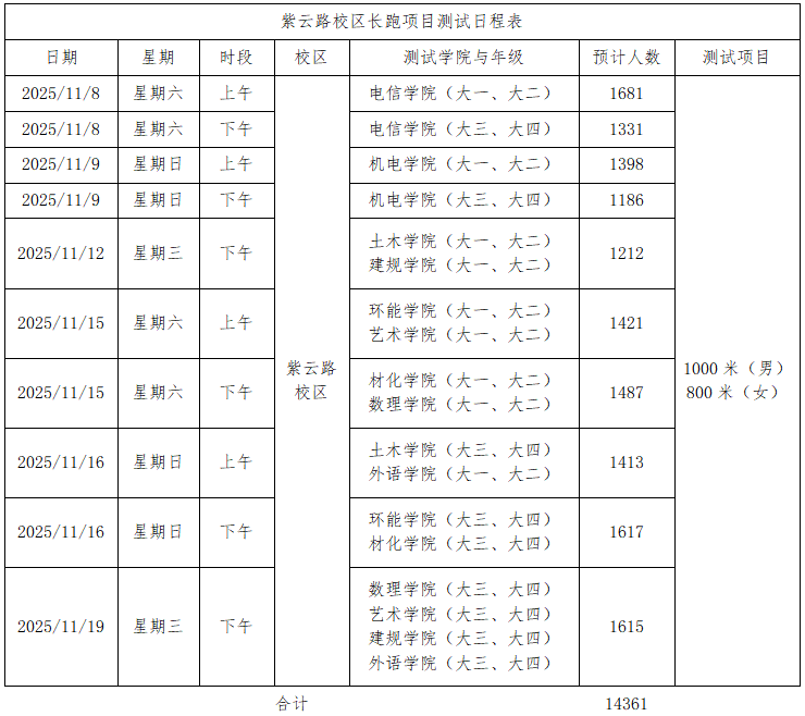 2025年学生体质健康测试工作将于11月8日开始,请各学院大力宣传、积极动员并督促学生认真参加测试。