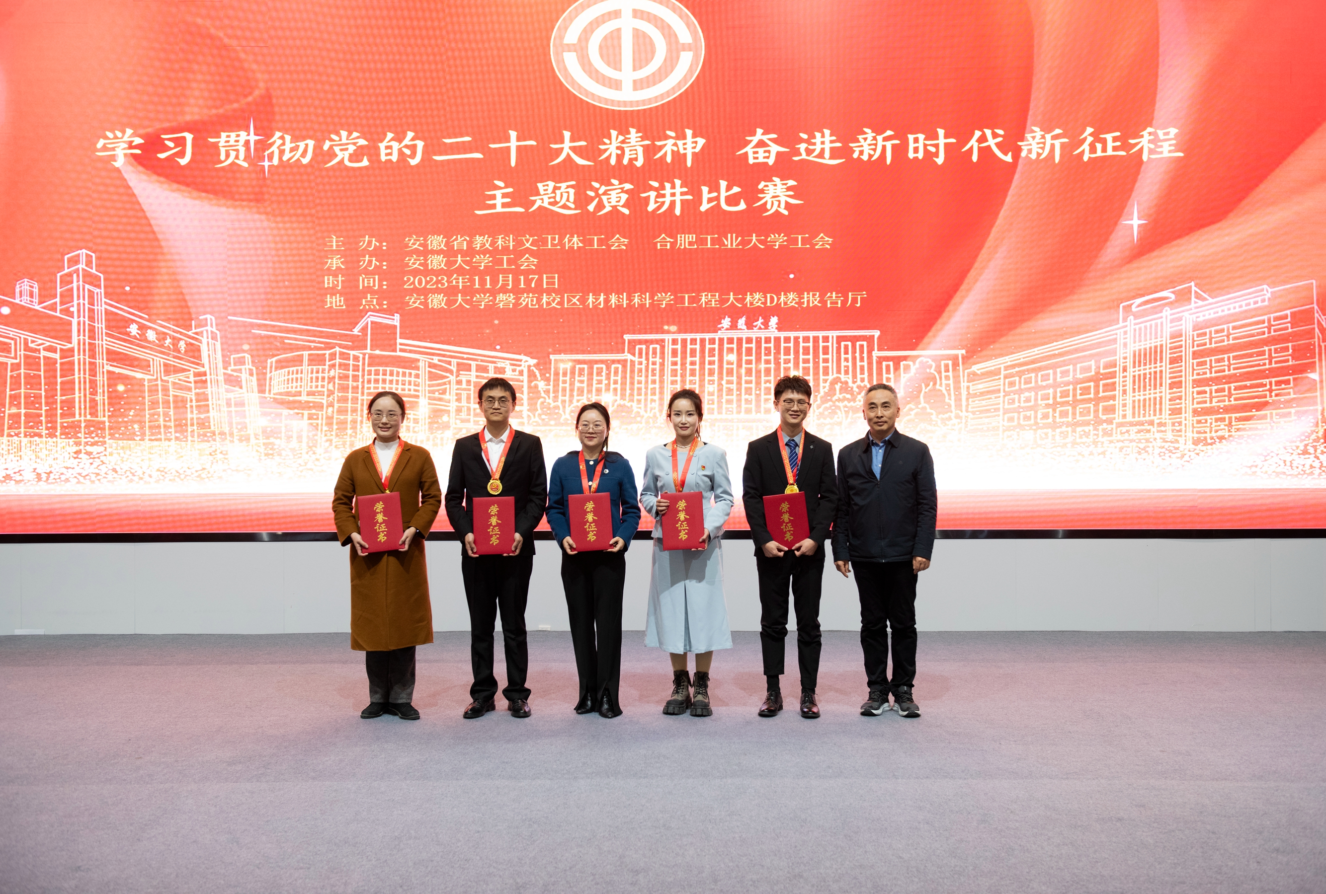 本网讯 近日,省教科文卫体工会中片区“学习贯彻二十大精神,奋进新时代新征程”主题演讲比赛在安徽大学磬苑校区举行。