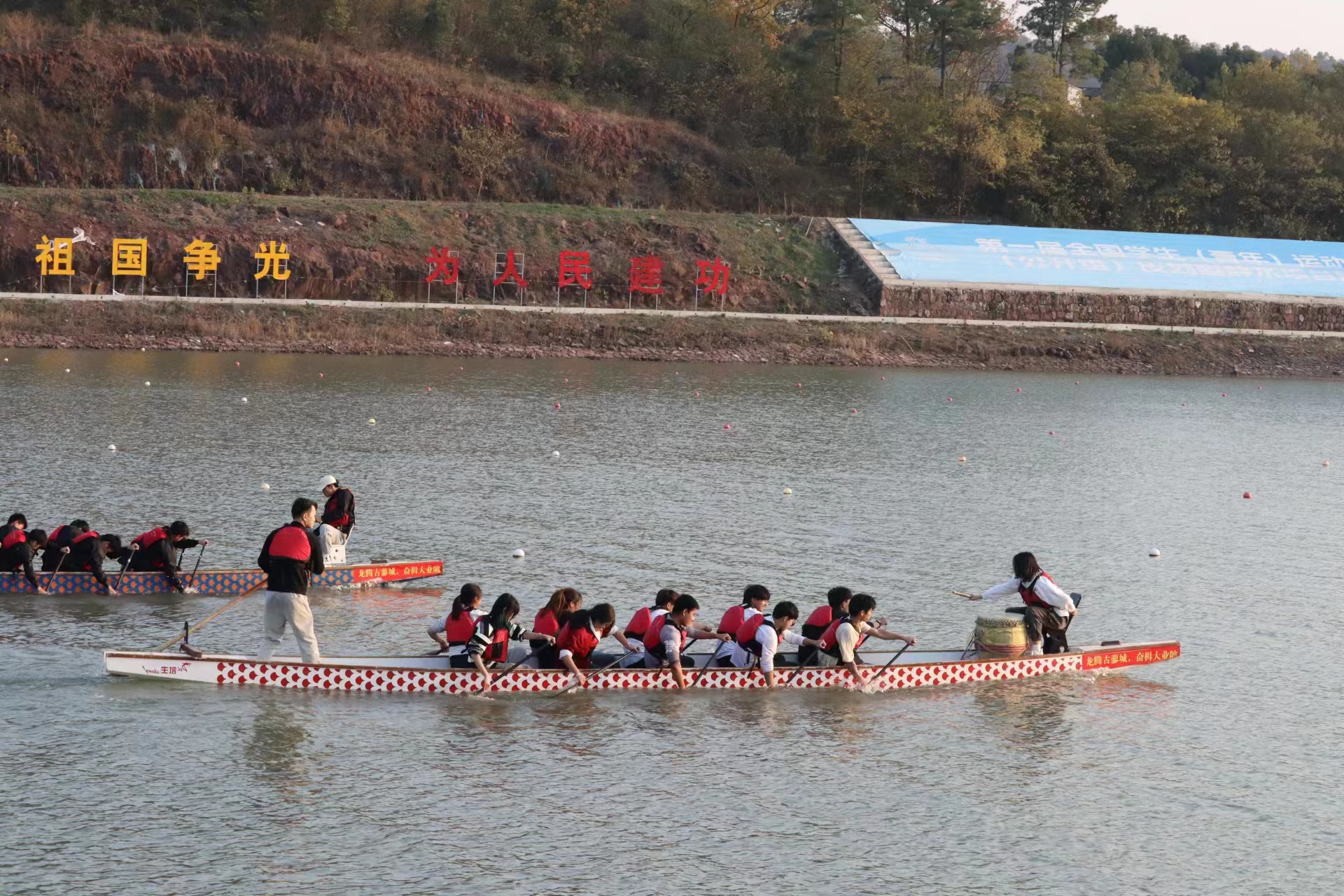 本网讯 11月26日,由安徽省体育局、安徽省教育厅、安徽省体育总会主办,安徽省龙舟运动协会、安徽省水上运动协会承办的2023年安徽省高校龙舟公开赛(合肥站)在紫蓬山大堰湾举行。本次比赛共有中国科学技术大学、安徽师范大学、beat365官方网站等12所高校22支龙舟代表队348人参赛。