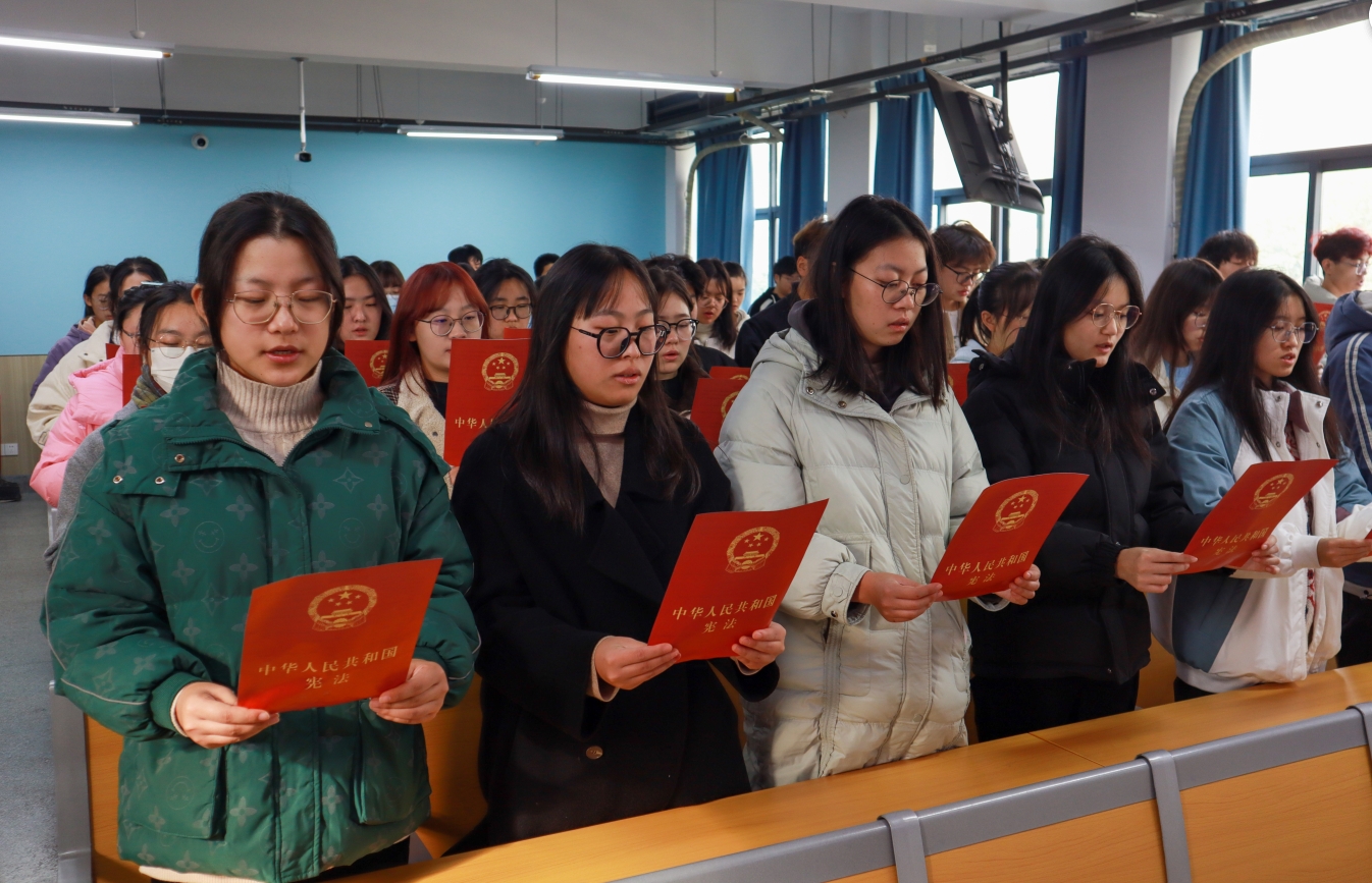 本网讯 12月4日是第十个国家宪法日,为弘扬宪法精神,增强宪法意识,12月4日上午,学校组织师生代表近400人分别在南北校区的会场参加2023年国家宪法日教育系统组织的“宪法晨读”直播活动。