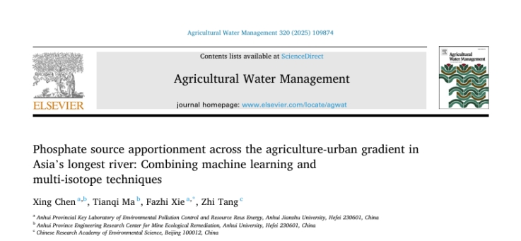 近日,环境与能源工程学院陈星老师在该领域取得重要进展,以第一作者在权威期刊《Agricultural Water Management》(中科院1区,影响因子6.5)在线发表了题为“Phosphate source apportionment across the agriculture-urban gradient in Asia’s longest river: Combining machine learning and multi-isotope techniques”的科研论文。beat365官方网站为第一完成单位,谢发之教授为通讯作者。