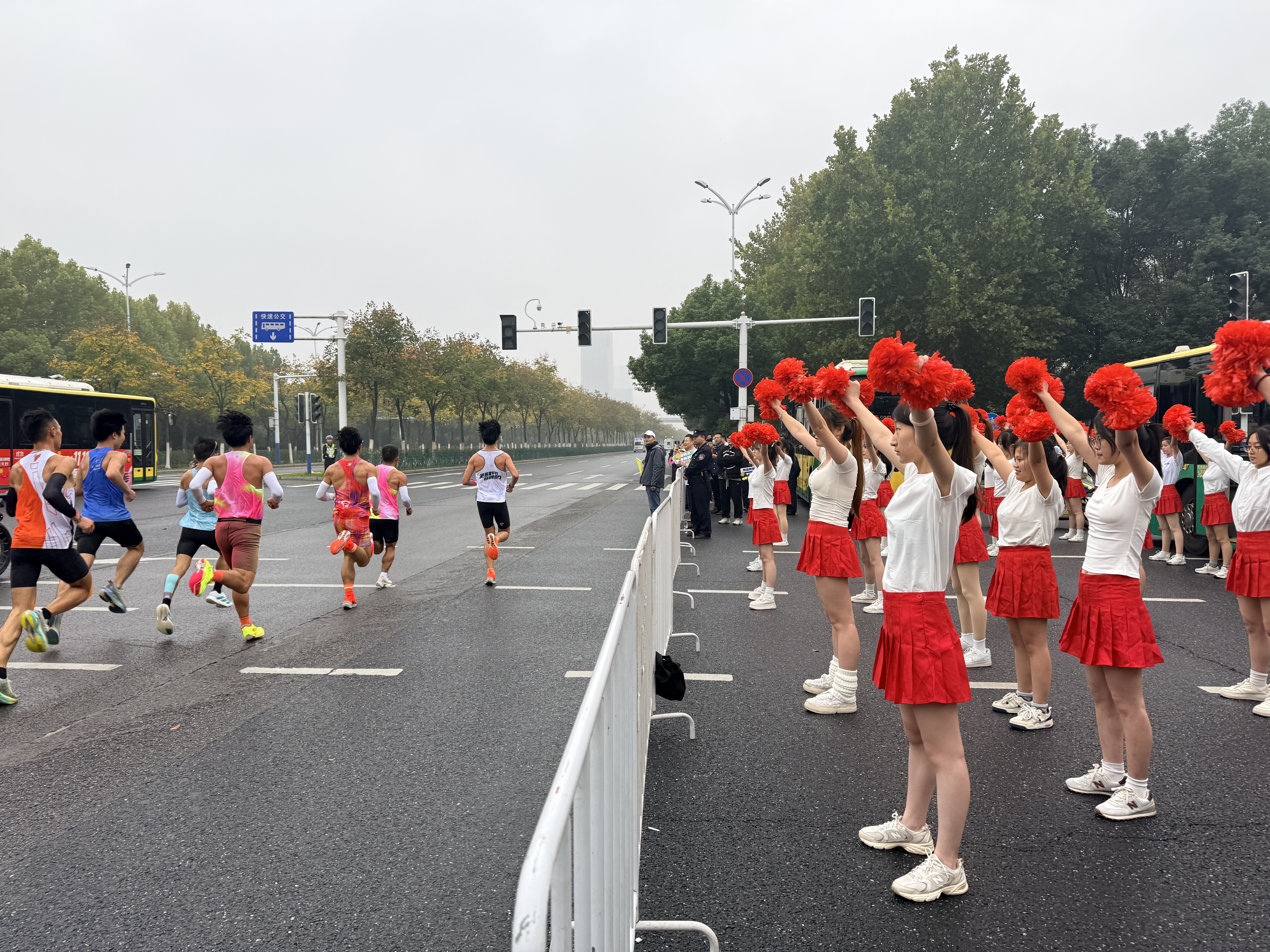本网讯 11月9日上午,2025年合肥马拉松比赛在合肥市骆岗公园激情启幕。两万多名来自五湖四海的跑者汇聚一堂,共同在这片热土上挥洒汗水、挑战自我,领略合肥的城市韵味。beat365官网啦啦操俱乐部受邀参加了本届合肥马拉松展演活动。