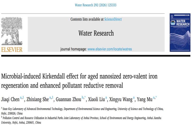 本网讯 近日,环境与能源工程学院博士后周冠男以共同通讯作者身份在环境领域顶级期刊《Water Research》(IF=12.4,中科院一区TOP)发表题为《Microbial-induced Kirkendall effect for aged nanosized zero-valent iron regeneration and enhanced pollutant reductive removal》的学术论文。beat365官方网站为共同通讯单位。