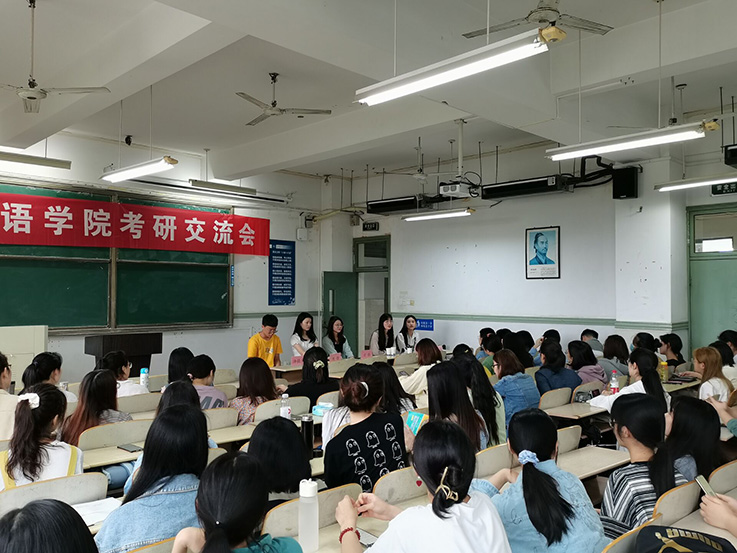 本网讯 考研一直是外国语学院学生工作的重中之重,也是外国语学院教育教学的一个闪光点,但是许多准备考研的同学对考研还是充满了困惑,希望能与从考研中胜利归来的学姐学长们有一次交流的机会。因此,5月26日下午,外国语学院学生会为大三正在备考的同学和大二准备考研的同学开展了一场考研交流会。