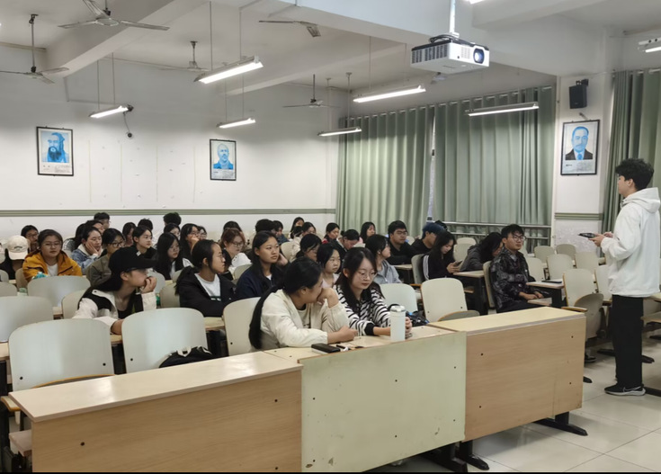 会议开始,新生们在会议室集合并按部门分批入座。会中,院学生会主席黄儒峰就各个部门的工作内容向学生会新成员们进行详细的介绍,各个部门部长也根据部门的具体情况非常热心地解答部员们的疑惑,并且统一安排了下个月的工作内容。最后,学记部部长就查课流程进行全面的说明,生活部部长也对查寝事宜进行详细讲解。