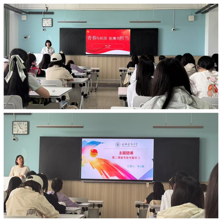 艺术学院辅导员袁婧卓老师,通过“青春为祖国,挺膺共担当”为核心的课程内容,结合对当代中国先进技术和理论的介绍,向同学们阐述了新中国成立后的一系列改革措施和前沿技术。并在宣讲过程中,对在座的每位青年朋友寄予希望,号召大家为中华民族的伟大复兴勇毅前行,以青春之热血铸华夏之精神。校团委韦小衡老师向大家介绍了第二课堂专题学习。在团课中,韦老师从四个方面对第二课堂展开叙述,其中包括第二课堂的简介、特征、主要模块,以及第二课堂的应用方法。