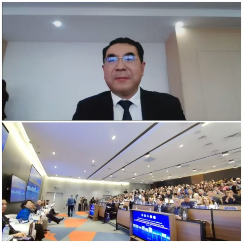 蔡国军在连线中高度评价了哈萨克斯坦建筑与土木工程学院45年来在建筑与设计领域取得的卓越成就,并对此表示钦佩。他指出,两校虽相隔万里,但“志合者,不以山海为远”。作为“一带一路”建筑类大学国际联盟的亲密伙伴,两校学术方向高度契合,价值追求同频共振,是天然的同行者。