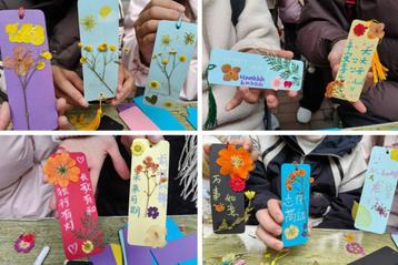 有的同学画上了可爱的卡通形象,有的同学写下了励志的座右铭,还有的同学精心搭配色彩,制作出独一无二的干花书签。在制作过程中,大家互相交流心得,分享创意,原本陌生的同学在这一刻变得熟络起来。完成制作后,同学们在书签上写下了“明天会更好”、“保持微笑”、“逢考必过”等温暖的寄语。