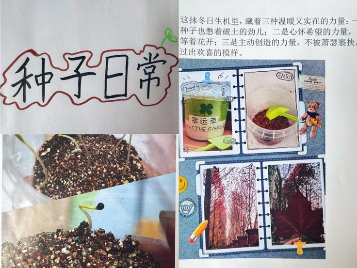 “播种悟蓄 待芽成长”种植感悟活动同步推进,将抽象的“蓄势”理念转化为具象实践。同学们从学院心理辅导站领取花种与定制种植盒,认真书写专属“蓄势目标”,以宿舍为单位打造“种子成长角”,坚持每周记录种子生长全程。在亲手培土、悉心浇灌的过程中,同学们真切感受生命成长的不易,深刻体悟扎根积累、厚积薄发的生命智慧。