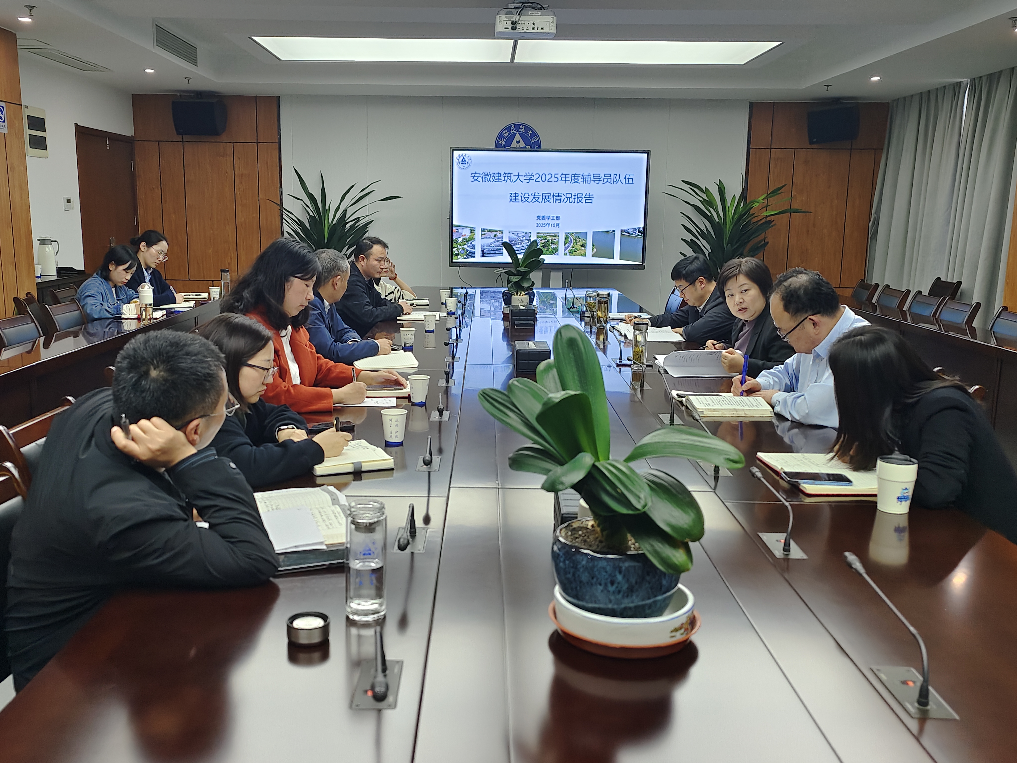 会上,学工部介绍了前期开展学校辅导员队伍建设的调研情况,并做了题为《beat365官方网站2025年度专职辅导员建设发展情况》的专题报告。报告从两个维度展开:一是从十个方面对全校专职辅导员队伍整体建设情况进行了总结,指出了当前存在的主要问题,并围绕组织赋能、发展晋升、激励保障等方面提出了改进意见和建议;二是针对各学院辅导员队伍配置细节进行个性化梳理,明确当前队伍建设中的优势与待优化方向。