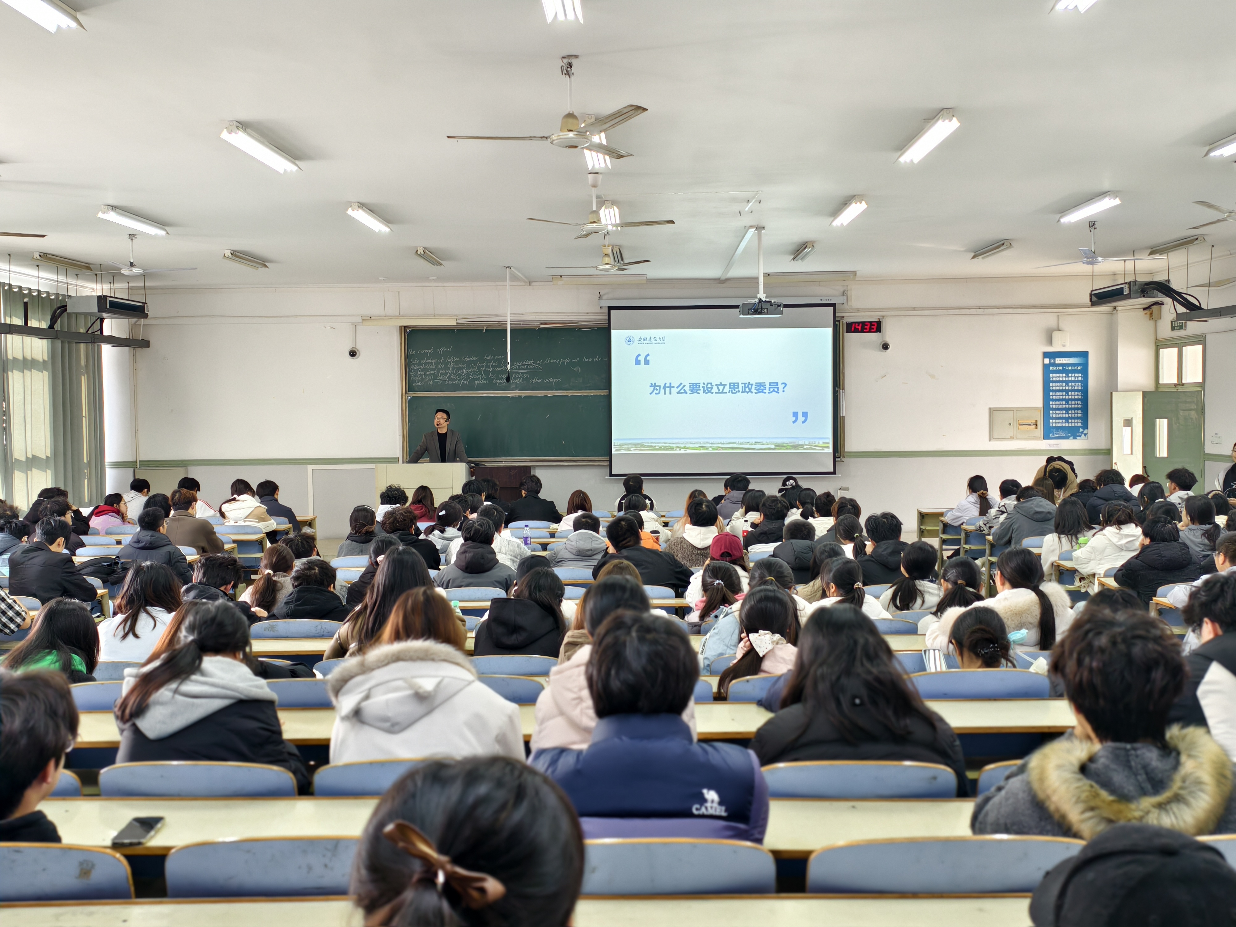 马克思主义学院的王勇副教授作题为《当好桥梁,凝聚力量——新时代思政委员的使命与担当》的报告。他剖析了高校设思政委员的时代背景与必要性,点明新时代加强大学生日常思想政治教育的迫切需要,凸显思政委员作为师生“连心桥”的关键作用。他带领同学们学习习近平总书记关于青年学生的重要论述,重温习近平总书记对青年的寄语,共同回溯习近平总书记的大学岁月与奋斗历程,激励大家将个人理想融入国家发展,勇担民族复兴大任。此外,王勇还通过活动图片,展示“学生讲思政课”等特色实践成果,开拓了思政委员的工作思路。