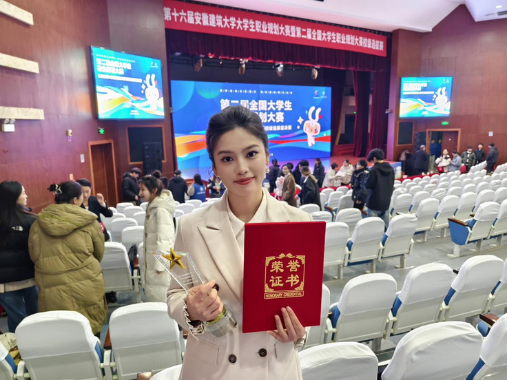 纸上得来终觉浅,绝知此事要躬行。大学是赋能成长的沃土,张云在专注学业之余,坚持拓展能力边界,将专业知识融入实践探索的每一步。她先后在安徽环启建设工程有限公司、阳光电源股份有限公司等公司实习,将专业知识与实际工作深度融合;参与“三下乡”社会实践活动,走进舒城县汤池镇助力农产品售卖,获评“乡村振兴代言人”称号,所在团队收获汤池镇政府表彰信;加入学校“火笔生花”团队保护非遗文化,以实践项目为载体,将非遗传承与思政教育相结合,在文化调研、技艺研习中厚植青年学生的文化自信与传承担当;在职业生涯规划大赛、模拟面试大赛中斩获省级铜奖、银奖。在一次次跨界尝试中,她提升了沟通协同与问题解决能力,拓展人生的宽度与厚度。