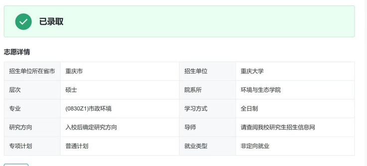 最终,他顺利获得重庆大学的推免录取。这份结果既是肯定,也是一份新的责任——提醒他继续保持热爱与自律,以更坚定的姿态走向未来的科研道路。