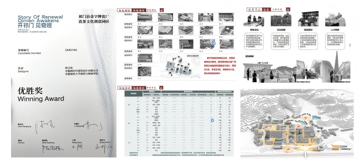 大四阶段,她有幸深度参与了beat365官方网站与安徽新时代建筑设计有限公司合作的国际设计竞赛。在《安徽黄山祁门城市更新策规一体及建筑设计》项目中,导师团队在对当地深入细致的调研中,敏锐地发现了瓷茶文化这一贯穿历史与当下的重要线索。“导师提出的以瓷茶文化为设计主线,让我明白深入的文化挖掘是空间再生的灵魂所在。”最终团队方案荣获优胜奖,她深切体会到:“这个成果是产学研各方智慧的共同结晶。它让我明白,好的设计必须建立在扎实研究的基础上,并最终服务于社会发展。”这些实践经历不仅强化了她解决复杂问题的综合能力,更让她确立了将学术研究、专业设计与社会需求深度融合的信念。