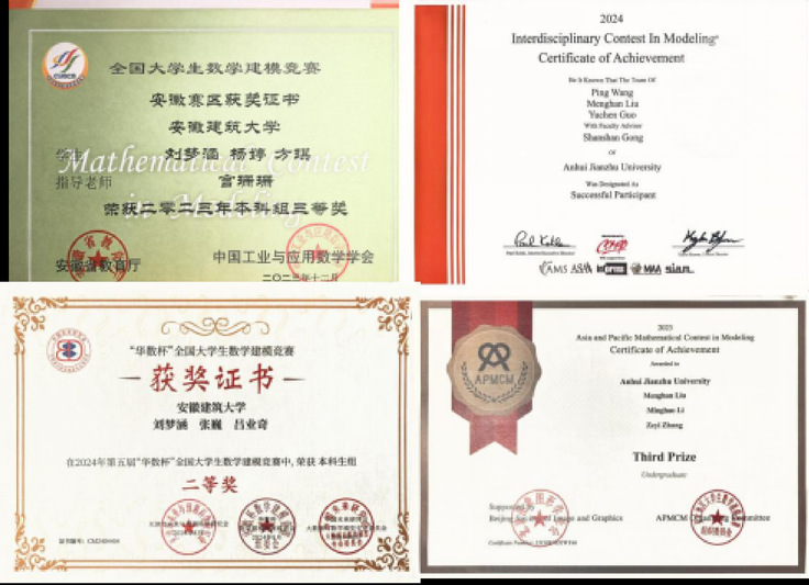 她积极投身数学建模竞赛,先后荣获“高教杯”全国大学生数学建模竞赛省三等奖、亚太地区大学生数学建模竞赛三等奖、“华数杯”全国二等奖等。在比赛中,她快速构建模型、处理数据、撰写论文,并与队友紧密协作,共同攻坚。她强调,过硬的专业能力、良好的英语水平与团队精神,是竞赛获奖的关键,也是科研竞赛路上不可或缺的素质。