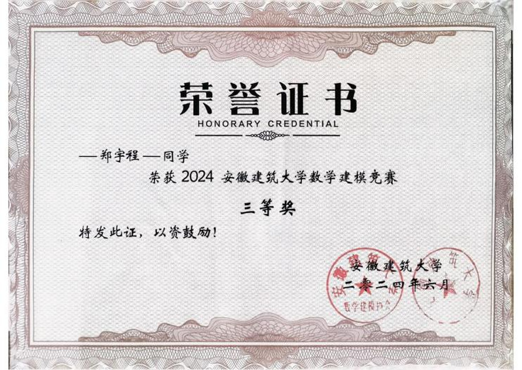 “理论是基础,实践是提升。”郑宇程主动投身科研,将理论转化为实践能力,明确科研兴趣方向。作为核心成员,他参与国家级大创项目《探究UiO-66(Zr)-X可见光降解四环素类抗生素》,熟练掌握溶剂热法制备光催化材料技术,负责UiO-66-X系列材料及柠檬黄溶液配制、产物预处理,运用XRD、TEM表征分析材料性能。团队协作中,他深入研究UiO-66(Zr)能带调控与光吸收性能提升方法,参与摸索降解最佳条件,深刻领悟科研严谨性。此外,他以负责人身份参与2024年校数学建模竞赛,运用神经网络算法构建真烟异常流动预警模型,完成MATLAB数据筛选与分析,提升编程、数据分析及团队协作能力,拓宽专业视野。科研积累让他熟练掌握SPSS、MATLAB等软件,具备独立样品制备与实验改进能力,成为保研核心优势。