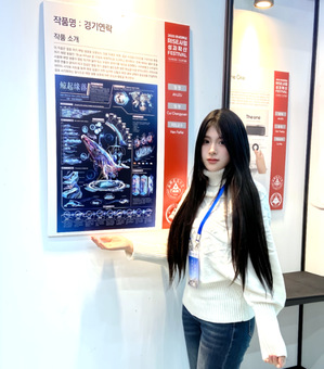 大二起,崔程媛主动将视野投向课堂之外,在学科竞赛中探索设计的无限可能。她将目光聚焦于真实的社会议题。在“中国好创意”大赛中,项目《智驾护航,让银发族的户外时光更从容》源于对社区老人出行困境的深切观察。通过深入调研,她提出“行走即服务”理念,设计的智能助行器旨在赋予老年人安全、尊严与陪伴,作品最终荣获国赛一等奖。另一项目《生态启示录:赛博海洋的密码与救赎》则以充满未来感的视觉语言探讨海洋生态危机,获得国赛二等奖。竞赛于她,是锤炼设计思维、践行社会关怀的熔炉,让她更加明确了对社会创新与思辨设计的热爱。