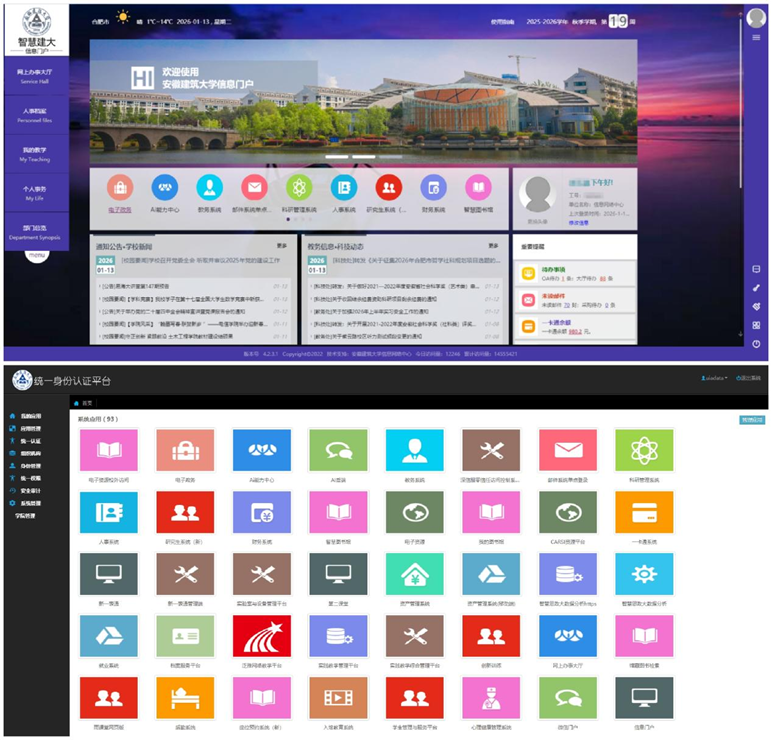 “十四五”期间,学校高度重视数据治理工作,以“数据同源、标准统一、共享共用”为目标,全力推进数据中心建设,建成了统一身份认证平台、统一信息门户平台、共享数据中心平台和数据清洗与整合平台,让数据成为学校科学决策的“智慧大脑”。实现人事系统、教务系统、学工系统、电子政务、科研系统、一卡通系统、资产管理系统、智慧图书馆、网上办事大厅、一表通平台等共计40多个系统身份集成和数据对接,为学校各部门工作提供了数据支持。
