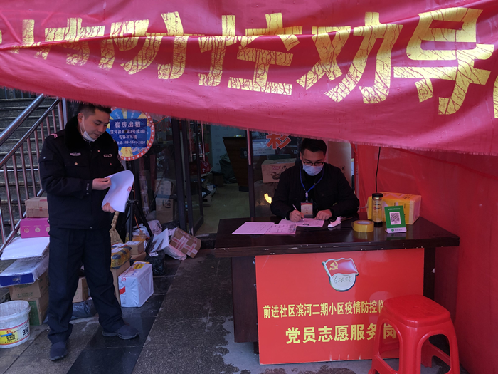 支部党员2016级自动化专业李允诺,遵循学校安排在家防疫期间,得知所在六安市金安区康乐社区需要人员定岗值守后,主动向社区主任报名申请,与社区工作人员一起坚守岗位。主要负责设置监测点,分发出入证卡片,定期核实并对进出小区的车辆进行管控。对小区居民进行温度测量,发现体温异常情况立即上报并实施隔离,配合各政府单位进行协调。寒风刺骨的二月天,李允诺同学与其他社区防疫人员一起,在仅有几张木桌和简易帐篷搭建起来的防疫点一起站岗,手脚是冰冷的,但心是火热的。有些社区居民自发的给防疫点送来热水,感谢他们的一份坚守给社区带来的一份安心。