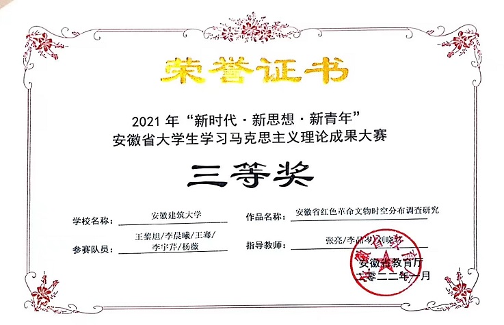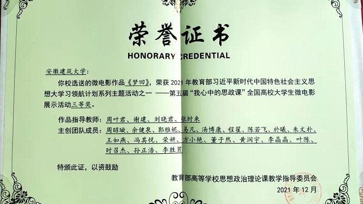 三是党建引领实践创新。根据不同课程的内容和特色,积极推进习近平新时代中国特色社会主义思想“三进”工作。精心讲好“开学第一课”,组织开展“大学生同上思政大课”,举办“四史”教育融入思政课堂教学改革创新报告会,开展“学党史”微视频创作比赛。组建教师团队赴全省各地实地调研,编纂《红色江淮光辉记忆——安徽红色建筑印迹》一书,召开新书发布会,助力红色文化和红色建筑文化研究。举办beat365官方网站首届青春筑梦剧场暨红色情景剧比赛等庆祝建党100周年系列活动,通过历史情景剧的演绎让革命历史人物的形象立体起来,丰富了革命文化的价值内涵。以电视剧《觉醒年代》为素材创作的微电影《梦回》获教育部“全国大学生习近平新时代中国特色社会主义思想大学习领航计划系列主题活动——我心中的思政课”微电影比赛三等奖。指导学生参加安徽省大学生党史知识学习竞赛,并获二等奖。