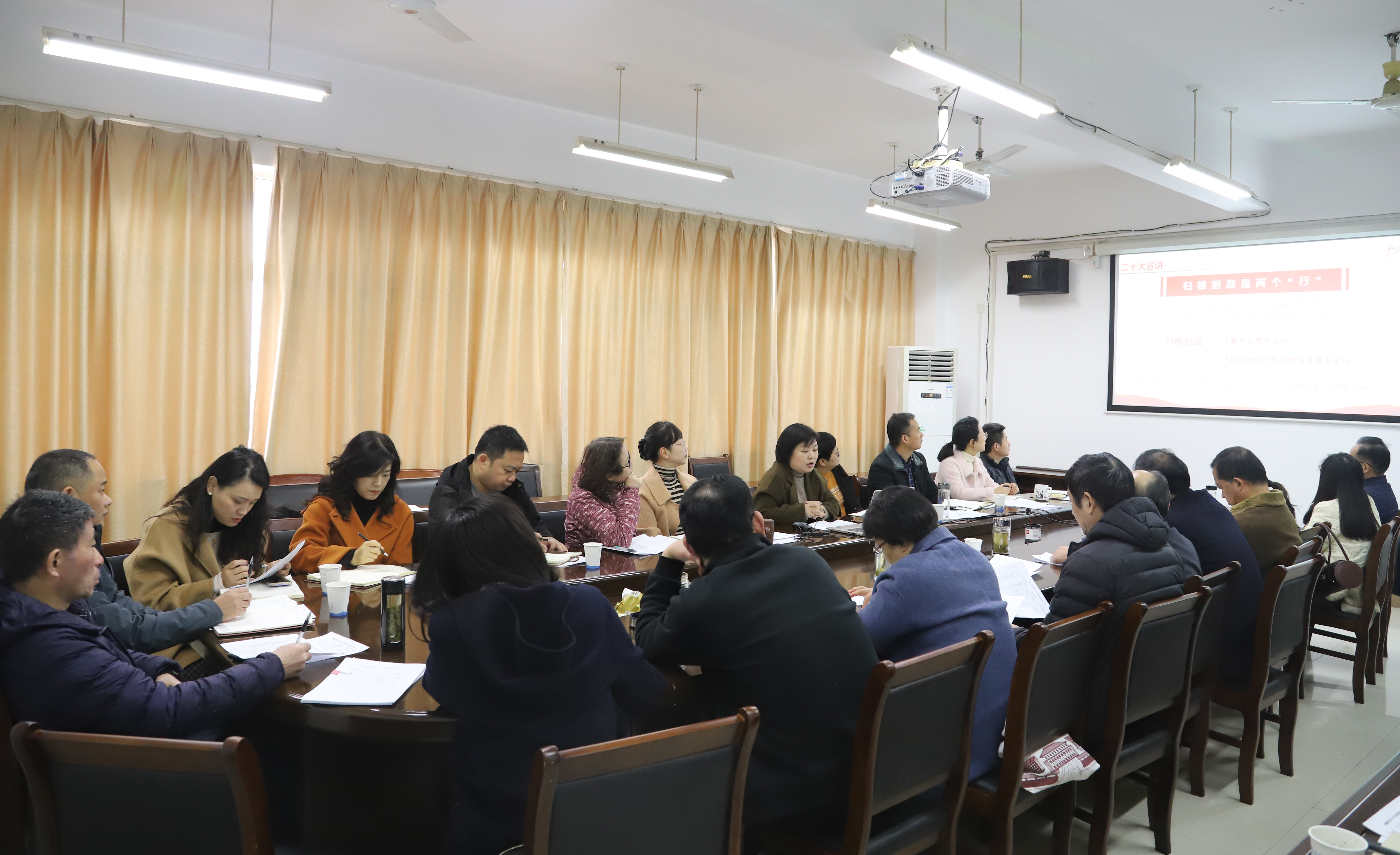 本网讯 12月1日,校党委常委、副校长李早以“学习二十大 领悟新思想”为题,在校职工之家(主教学楼1812室) 为全校工会干部宣讲党的二十大精神。校工会委员会委员、各分工会主席等参加了宣讲活动。