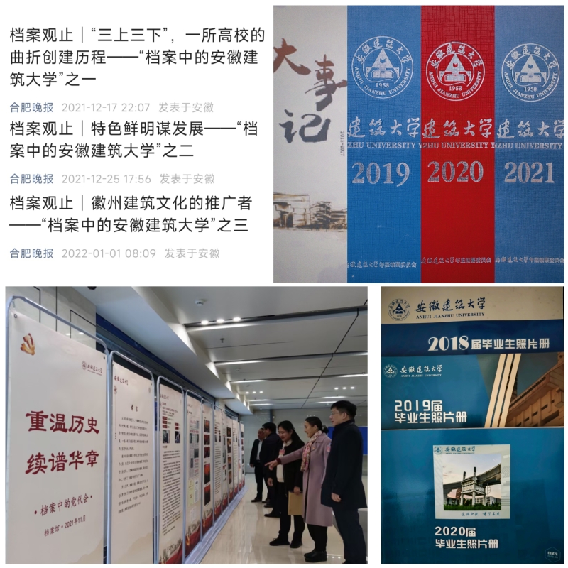 档案工作围绕学校中心工作,开发信息资源。学校第二次党代会前夕,通过校报、公众号、网站、会场展板等多种形式,开展“档案中的党代会”专题宣传。围绕“时代楷模”邱军校友在校生活轨迹,汇集其学习、担任学生干部、入党、参加文体活动等方面的纸质、图片、音视频档案记录,勾勒出其较为完整的求学生涯和积极奋进的人物形象,为中化集团筹办邱军同志光荣事迹展览提供宝贵的原始档案。为合肥晚报社汇集、提供体现学校办学特点、服务地方经济社会发展所做贡献的相关档案,推送档案观止栏目3期,“三上三下”专辑获得称赞。为校史馆更新,挖掘馆藏提供支撑。多次赴汤池村开展“我为群众办实事”实践活动,征集驻村扶贫工作队专题档案,对村级档案管理进行辅导。为《安徽年鉴》编撰稿件。编制《beat365官方网站2013-2017年大事记》、2018年后历届毕业生照片册。重启《beat365官方网站年鉴》编纂,确立并不断优化年鉴编纂工作机制,制发《beat365官方网站年鉴编纂工作暂行办法》,推进年鉴编纂逐步常态化、规范化,先后编纂2019卷、2020卷、2021卷,总字数逾300万字,条目数超1000个,另有各类附表名单近500个,为学校各单位工作查考提供便利。