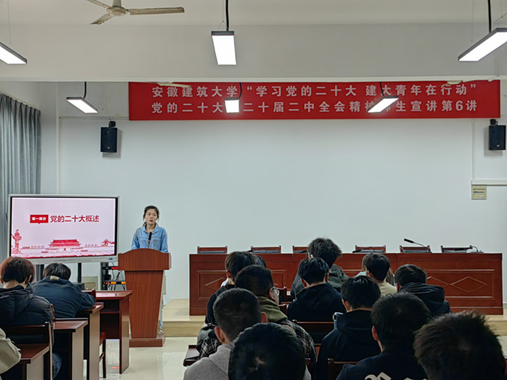 本网讯 3月26日,“学习党的二十大,建大青年在行动”党的二十大、二十届二中全会精神师生宣讲团走进机械与电气工程学院。机械与电气工程学院、环境与能源工程学院辅导员,学生代表、思政委员等100余人参加宣讲会。