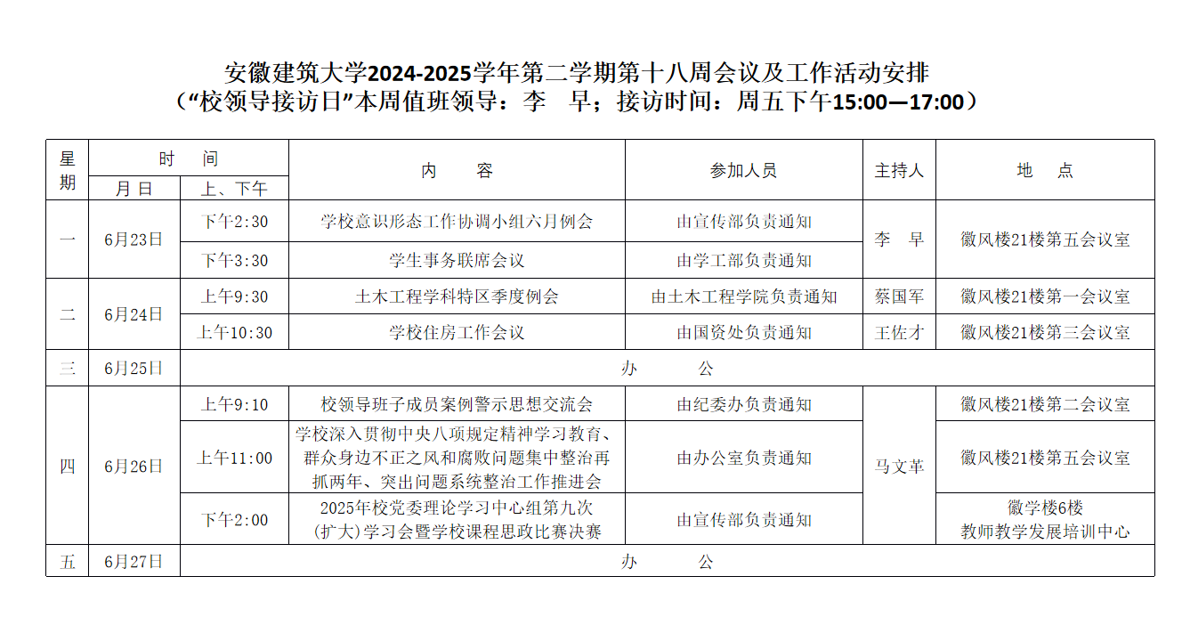 beat365官方网站2024-2025学年第二学期第十八周会议及工作活动安排