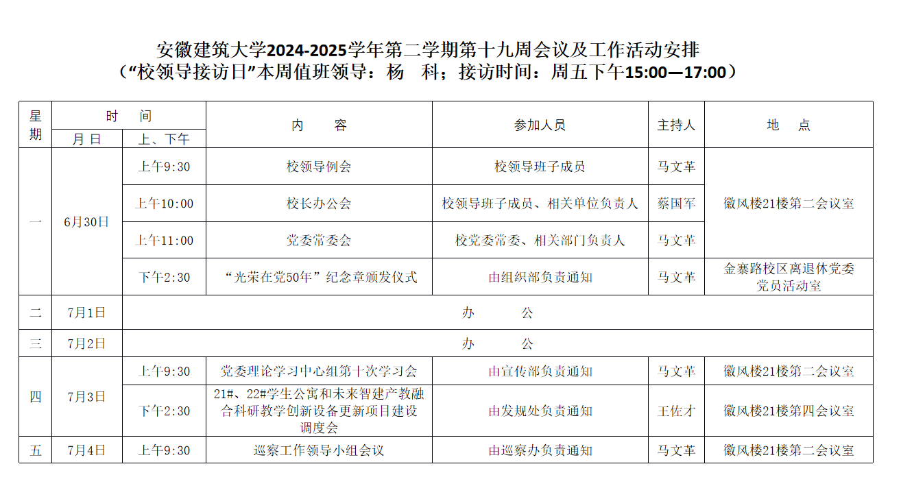 beat365官方网站2024-2025学年第二学期第十九周会议及工作活动安排