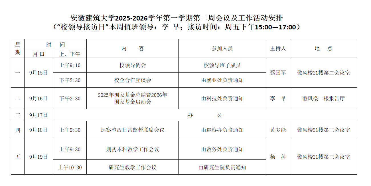 beat365官方网站2025-2026学年第一学期第二周会议及工作活动安排