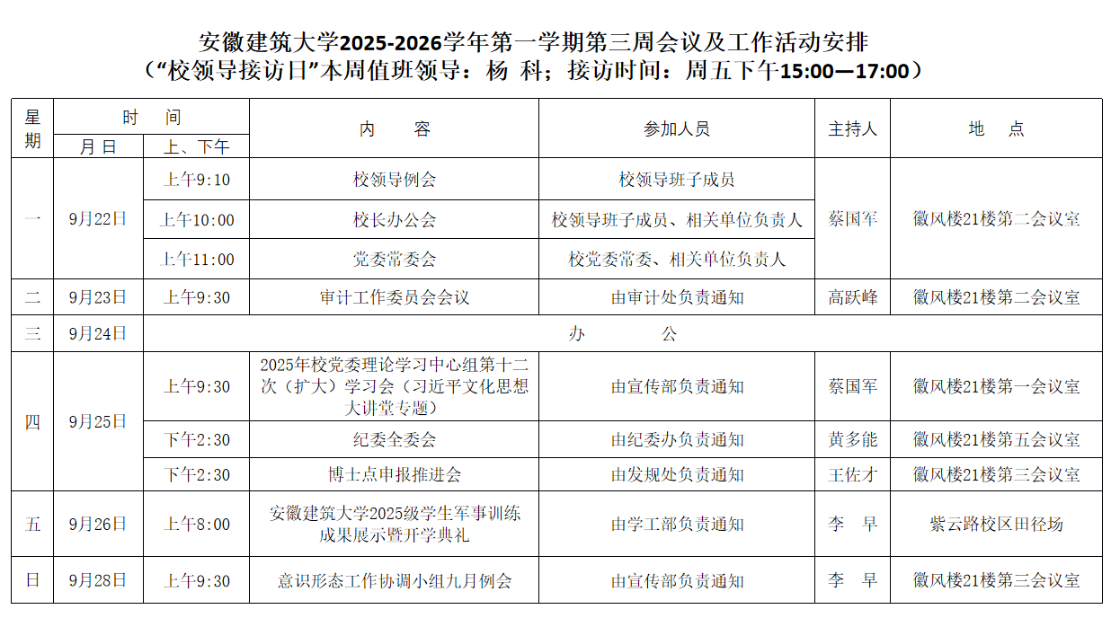 beat365官方网站2025-2026学年第一学期第三周会议及工作活动安排