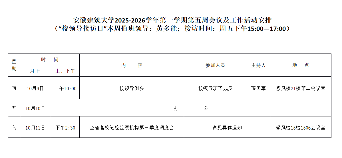 beat365官方网站2025-2026学年第一学期第五周会议及工作活动安排