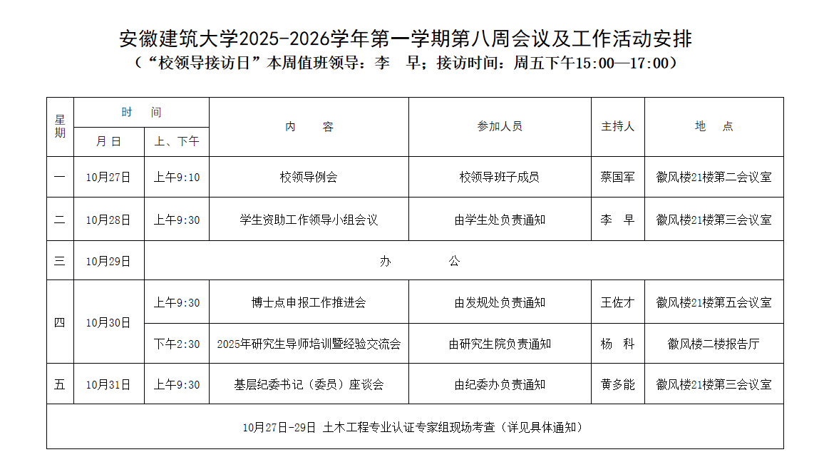beat365官方网站2025-2026学年第一学期第八周会议及工作活动安排