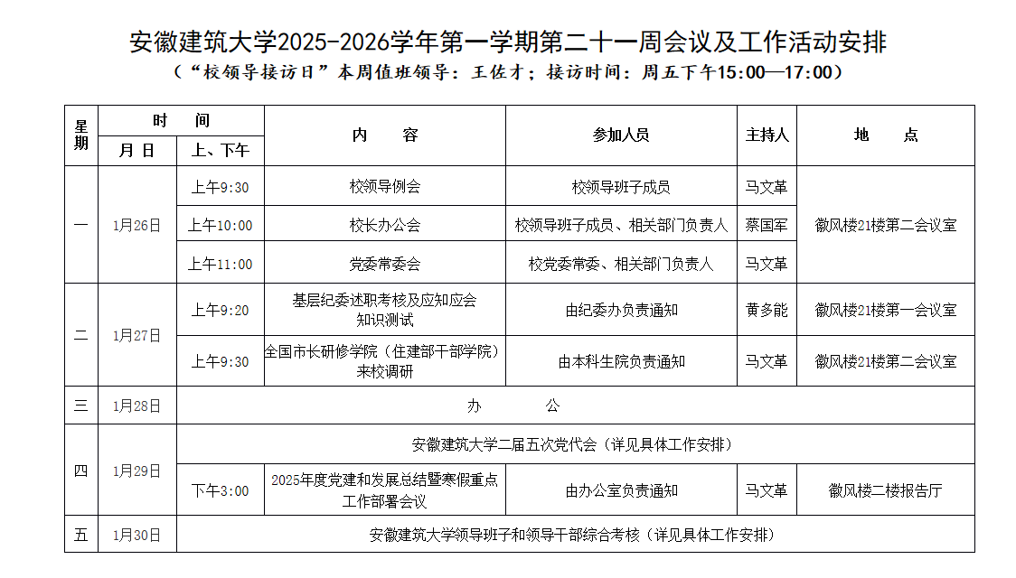 beat365官方网站2025-2026学年第一学期第二十一周会议及工作活动安排