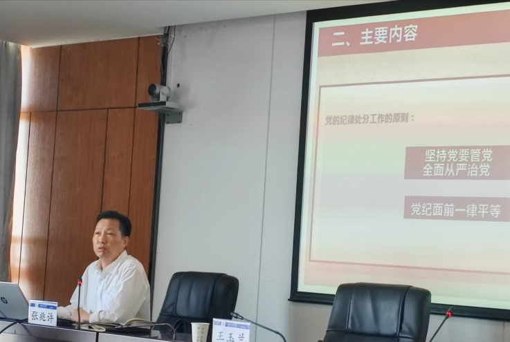 校纪委副书记、纪委办公室主任张兆许为读书班学员作了《中国共产党纪律处分条例》解读,他结合党章的学习和警示教育案例,阐述了党纪的发展、修订历程,解读了纪律处分条例的主要内容和“六项纪律”为党员干部划定的不可触碰的纪律底线。