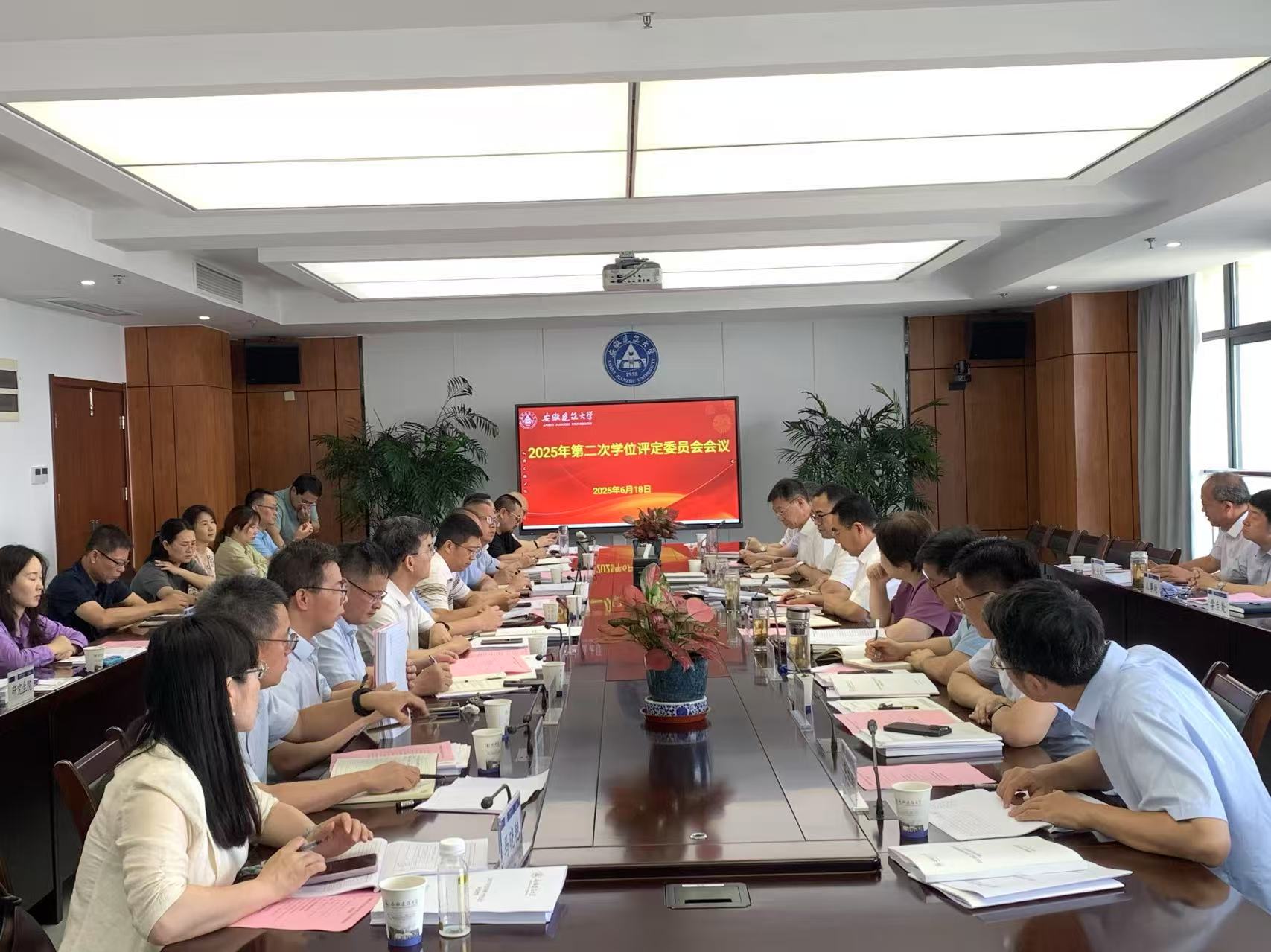 本网讯 6月18日,学校在徽风楼21楼第二会议室召开2025年第二次学位评定委员会会议。会议由校学位评定委员会主席、校党委副书记、校长蔡国军教授主持,校学位评定委员会委员、相关部门工作人员参加会议,纪委办公室、学生处、人事处、就业工作处等部门负责人列席了会议。