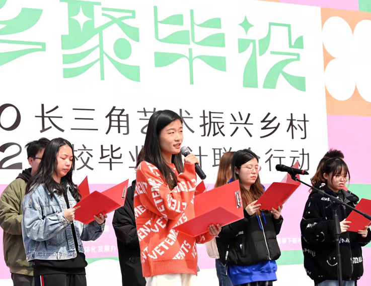 为加强乡村振兴研究与实践、强化本科人才培养水平,艺术学院把毕业设计课堂从校园转向广阔的乡土视域。由青年教师邵国良、卜令峰带队的毕业设计团队参加了此次“艺术振兴乡村·长三角12所高校毕业设计联合行动”。本次活动以“学生团队+指导教师+村民导师”的在地式培养方式“真题真做”,将毕业论文撰写、毕业成果展览、毕业答辩、成果落地等全流程在本地融合转化,把毕设作品展在田间地头、毕业答辩在乡村坊间,以教学实践行动参与乡村振兴。