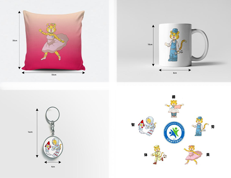 田小雨等同学设计“学小豹”IP形象,基于该IP创作了主题水杯、抱枕、钥匙扣等文创产品,充分展现同学们朝气蓬勃、奋发有为的精神面貌。