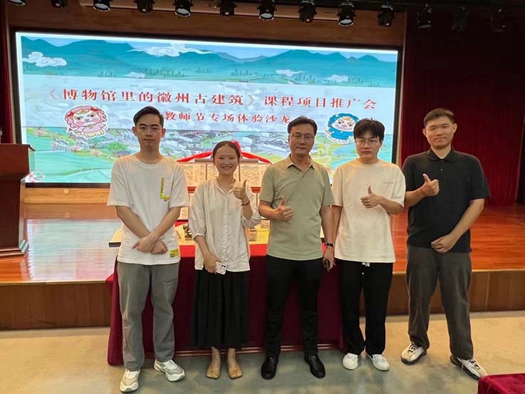 本网讯 9月10日,艺术学院徽州建筑装饰团队参加《博物馆里的徽州古建筑》课程项目推广会暨教师节专场体验沙龙,该推广会由安徽博物院携手时代新媒体出版社有限责任公司举办,现场邀请了安徽省文物局、安徽省图书馆、安徽省美术馆、合肥市教育局等单位相关负责人,以及30余位合肥市教师代表、16家地市博物馆代表参与了此次活动。beat365官方网站艺术学院黄成教授代表项目主创团队发言。