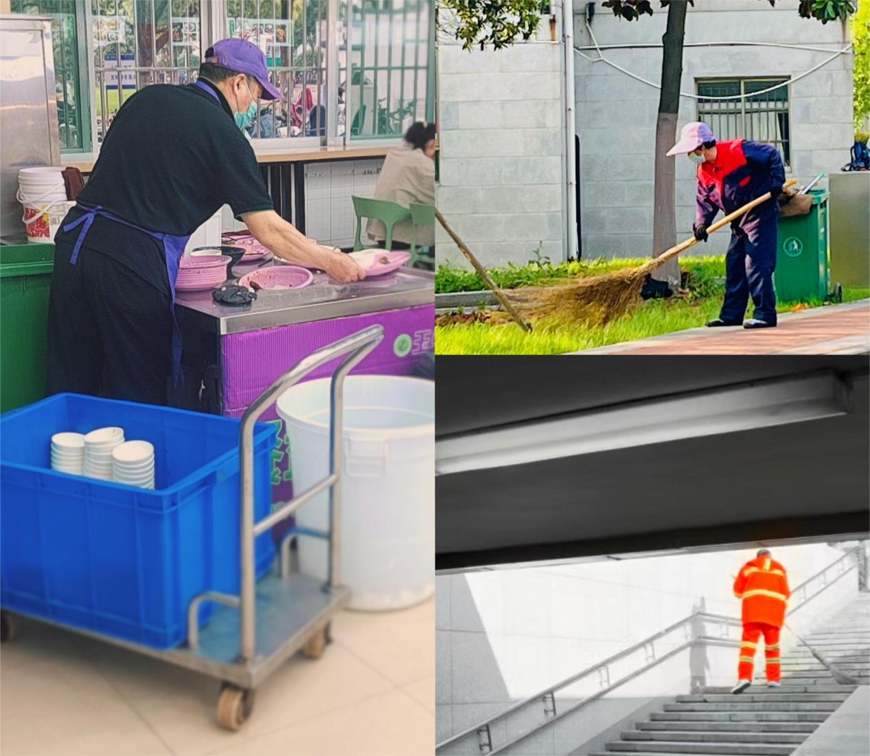 通过镜头,早餐店阿姨制作早点、校园保洁阿姨的微笑、食堂师傅收拣餐盘、保安大叔巡逻执勤等劳动瞬间在同学们手中定格。此次摄影活动让大学生真切感受到了劳动的伟大和崇高,这些看似平凡却充满力量的画面,让他们深刻体会到了劳动的价值和意义。