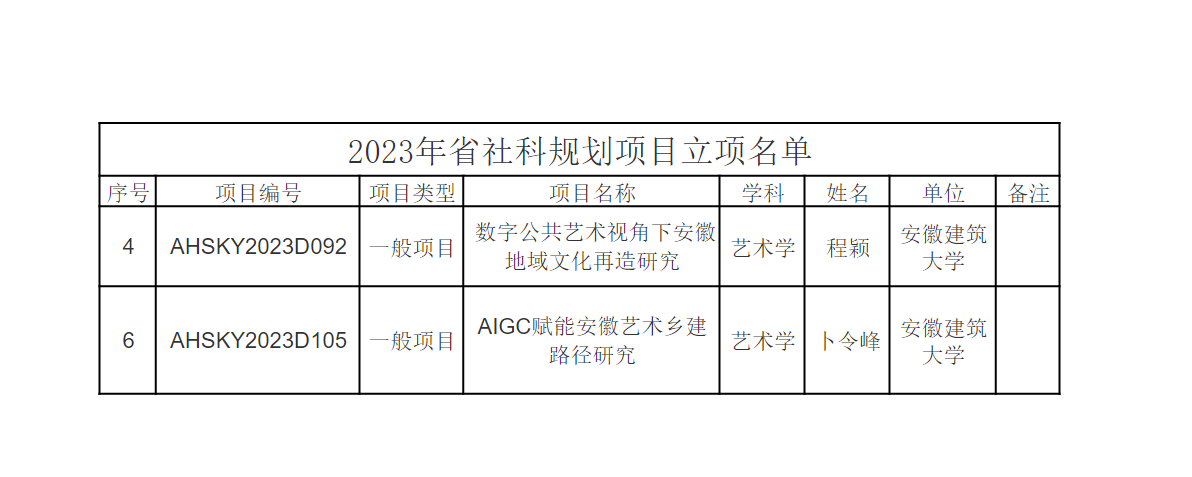 艺术学院2023年省社科规划项目立项名单