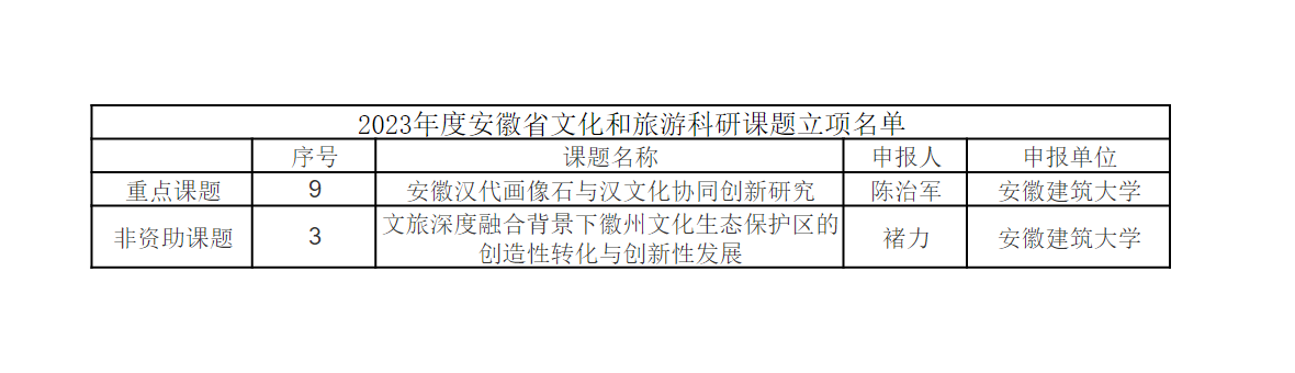 艺术学院2023年度安徽省文化和旅游科研课题立项名单