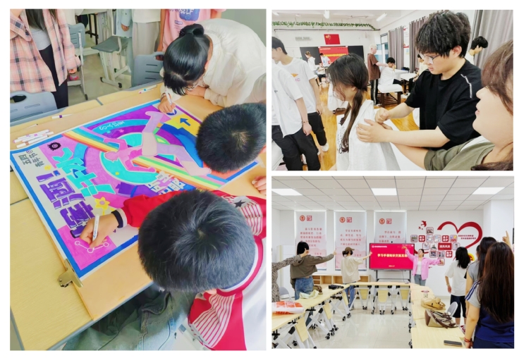 艺术学院学生党支部、团支部和特教学生开展了丰富的互动活动。在五四青年节海报创作中,大家俯身倾听盲人学生的创作构思,用文字、手势和聋哑学生交流,将专业技能与奇思妙想深度融合,共同描绘青春色彩。手语学习课堂上,艺术学院学生从零开始掌握沟通新方式。中医按摩体验中,特殊教育中专学生化身小老师,手把手传授中医技能。通过角色互换的实践,实现了知识技能的双向传递。
