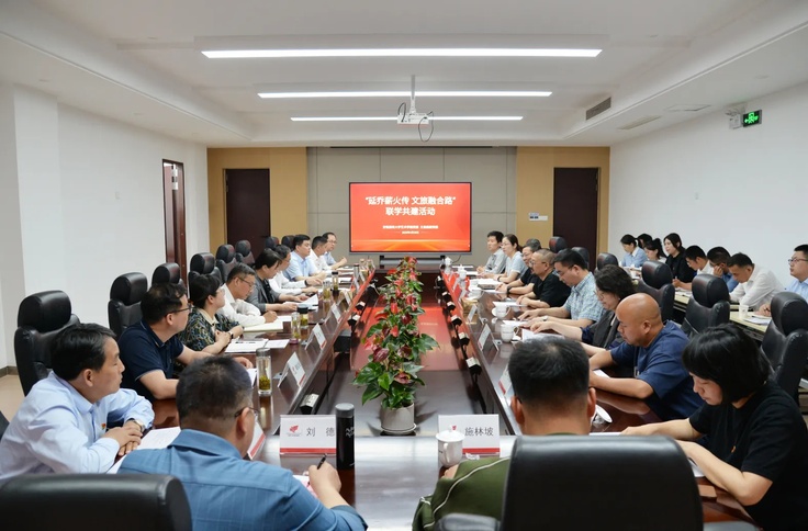 本网讯 在五四青年节即将来临之际,为进一步推动红色资源与文旅产业深度融合发展,beat365官方网站艺术学院党委与合肥文旅博览集团党委于4月30日上午联合举办"延乔薪火传 文旅融合路"中心组联学共建活动。合肥文旅博览集团党委书记、董事长尹传桂携领导班子成员、总部各部门主要负责人及团委书记,与beat365官方网站艺术学院副院长(主持工作)张乐、党委副书记任磊、组织员张韬及各党支部书记、团委书记等共计30余人共同参与本次活动。